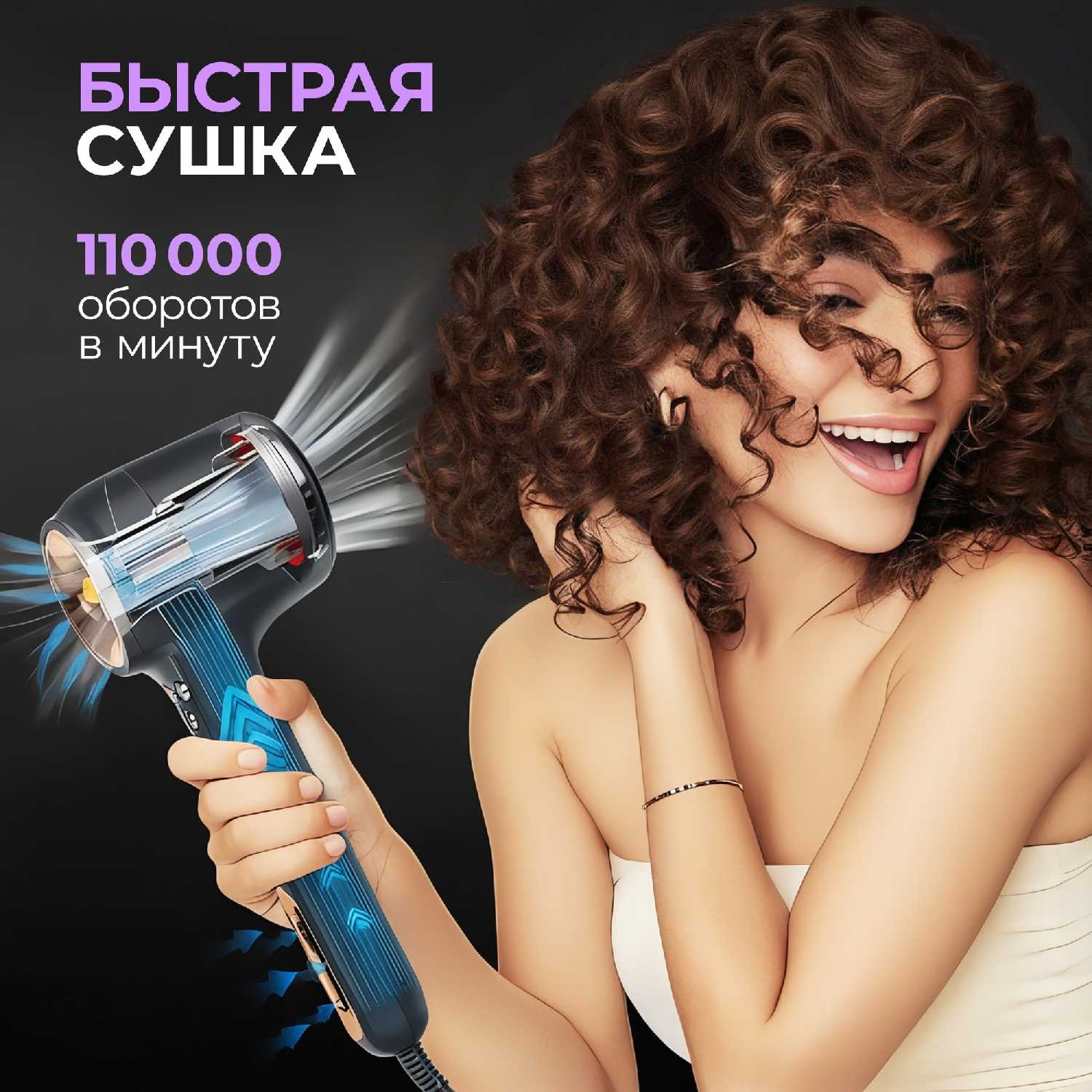 - + Тихий, быстро сушит волосы