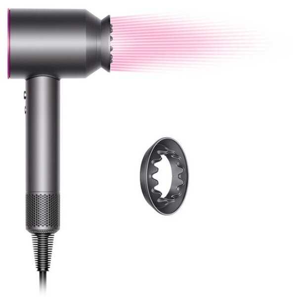 Быстро сушит, создаёт эффект ухоженных блестящих волос за счёт распределения потоков воздуха на насадке, не пушит волосы, не перегревается