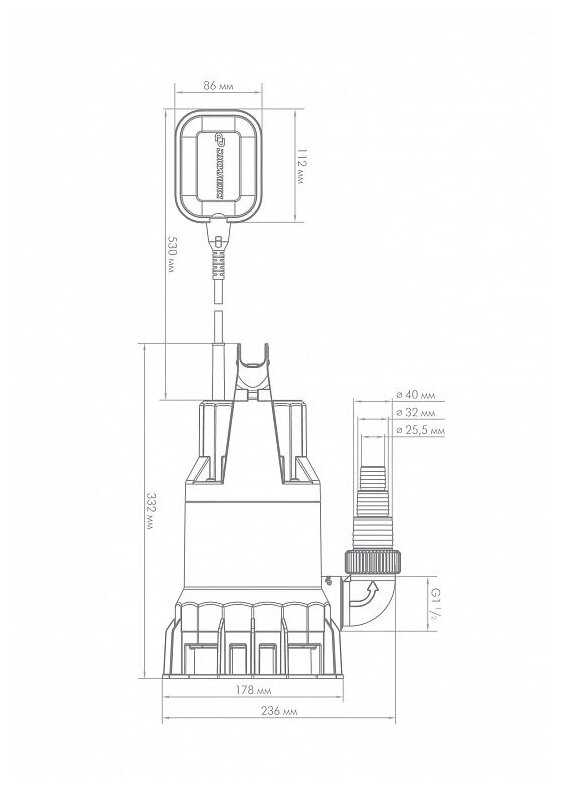 | Дополнительная информация : | степень защиты IPX8, диаметр подсоединяемых шлангов: 40 32 25 мм |