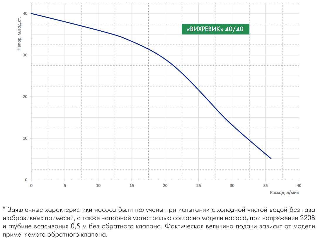 - максимальный напор: 40 м