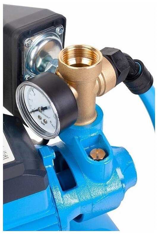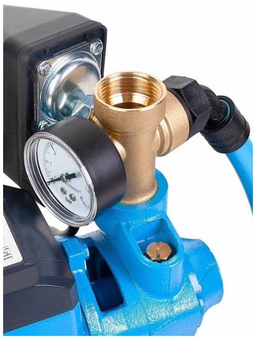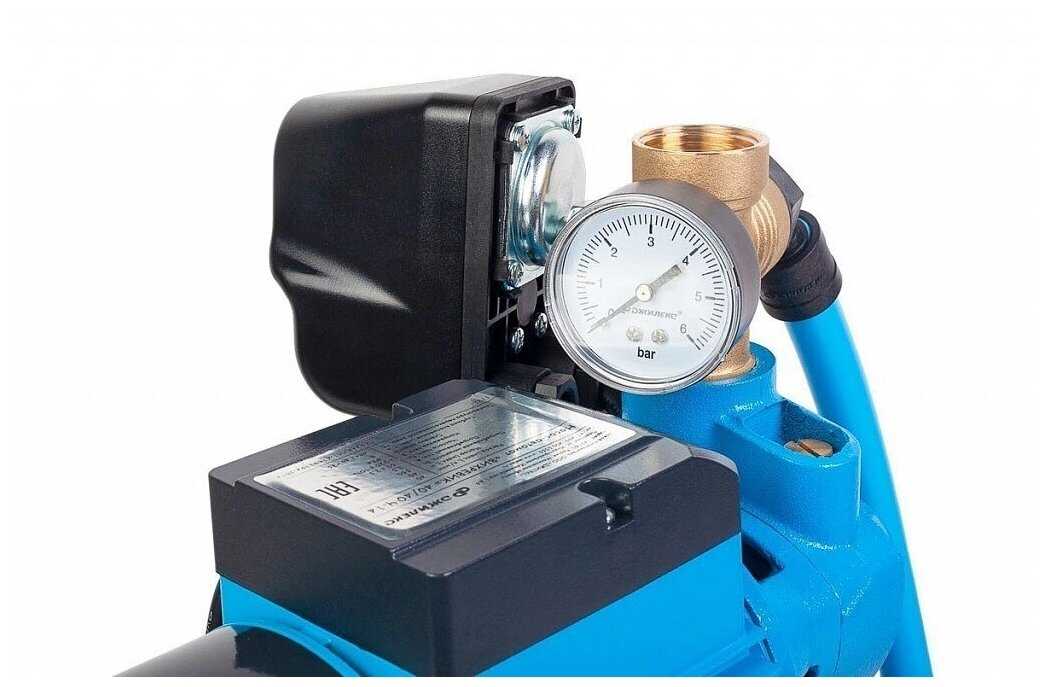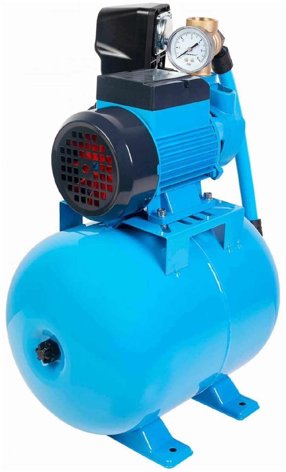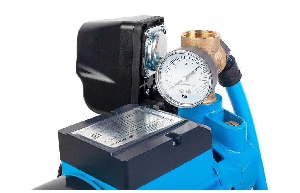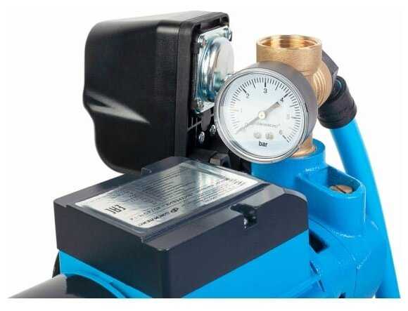 Был отрегулирован из коробки на давление воды в 2,5 очка (атмосферы). В баке давление воздуха было 2 очка. Пришлось отрегулировать на 1 очко меньше и там и там, ведь насос нам нужен только для заполнения стиральной машины-автомата водой из рядом стоящей ëмкости, так как водопровода у нас нет и проводить не хотят.