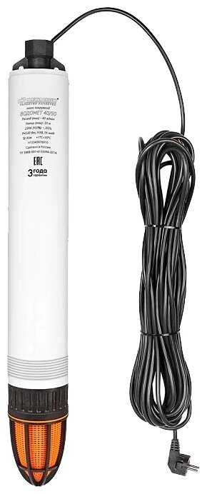 Монтаж и особенности эксплуатации: Комплектация включает 20-метровый кабель и обратный клапан на 32-мм трубу, что достаточно для большинства стандартных скважин глубиной до 20 метров, хотя некоторым пользователям приходилось удлинять кабель с помощью термоусадки. Литые крепления для троса признаны более надежными по сравнению с винтовыми соединениями у аналогов. При первом запуске может наблюдаться притирка механизмов, после чего насос выходит на штатный режим работы. Обратный клапан в комплекте имеет ограниченную эффективность и в некоторых случаях не может преодолеть давление в системе. При установке в скважины диаметром от 100 мм не возникает проблем с размещением благодаря компактным габаритам корпуса. Отдельные пользователи сообщают о незначительных протечках из патрубка подключения шланга в начале эксплуатации. Для стабильной работы рекомендуется обеспечить качественное электропитание без перепадов напряжения и использовать стабилизатор при нестабильной сети.