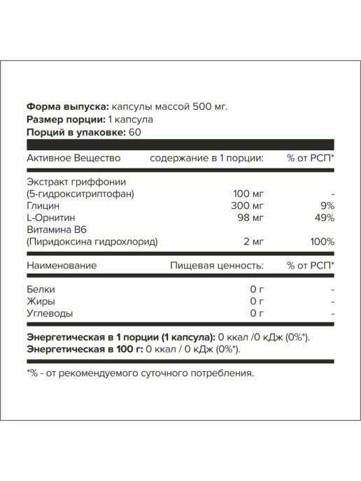 Основной ингредиент : | 5-гидрокситриптофан, орнитин |