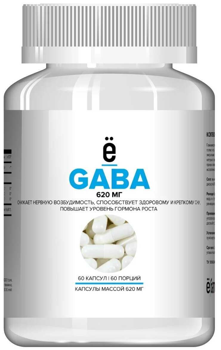 | Дополнительная информация : | состав: гамма-аминомасляная кислота, микрокристаллическая целлюлоза (носитель), диоксид кремния (агент антислеживающий), стеарат магния (агент антислеживающий), капсула (желатин) |