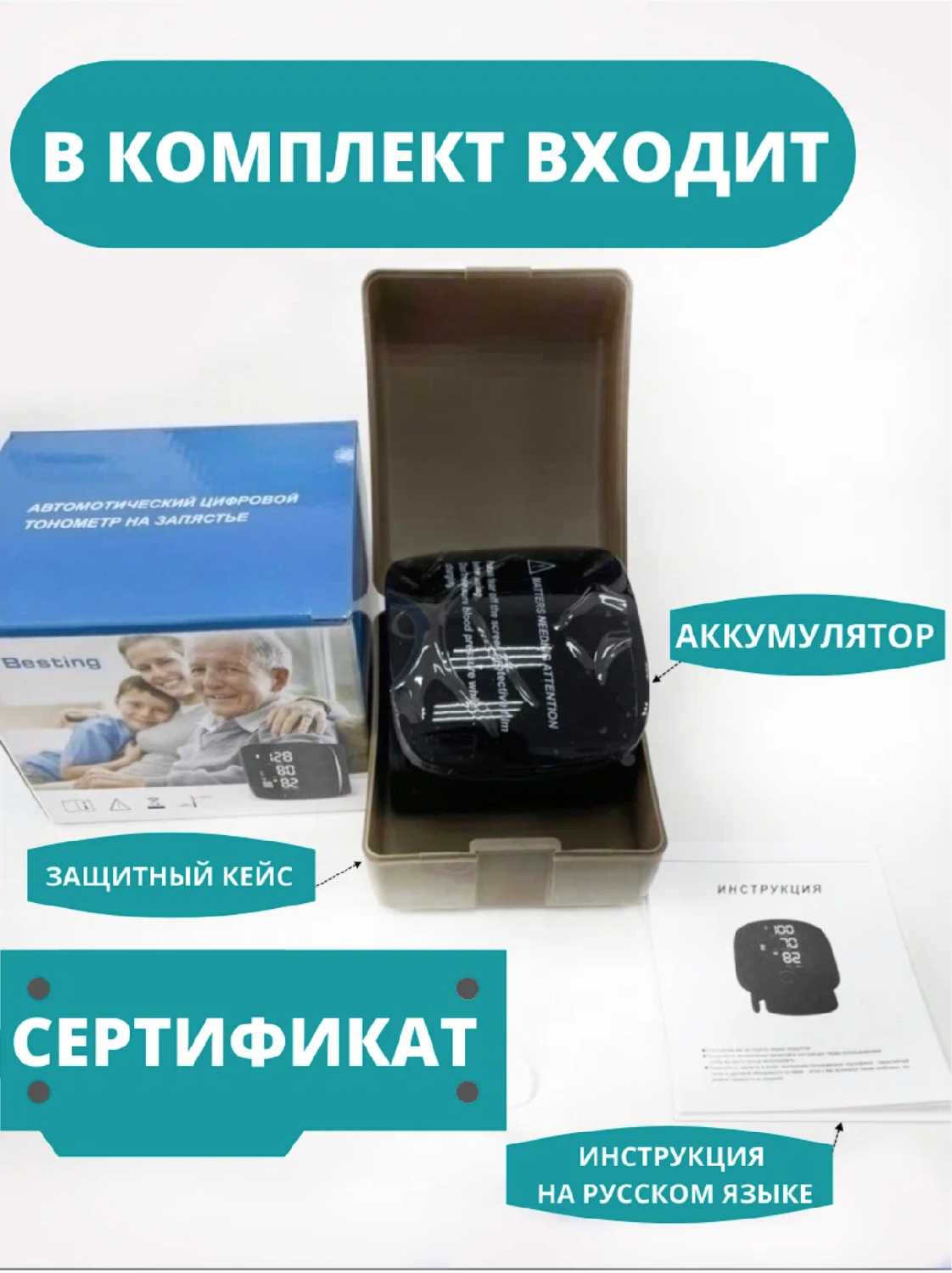 Комплектация : | тонометр, кейс для переноски, кабель для зарядки, инструкция, упаковка |