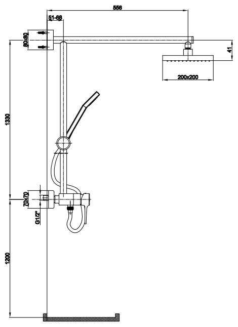 | Дополнительная информация : | высота стойки для душа: 1330 мм, длина верхнего душа: 200 мм, ширина верхнего душа: 200 мм |