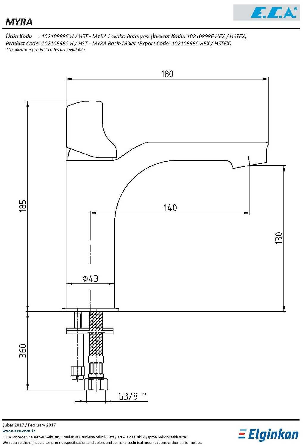 Характеристи E.C.A. Myra 102 108 986, нажимной