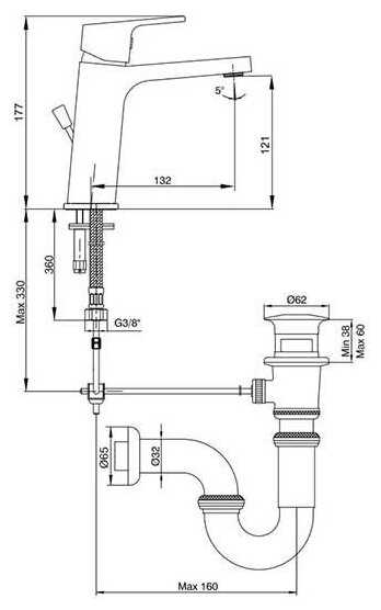 Характеристи E.C.A. Смеситель для раковины с донным клапаном Eca Tiera 102188012EX