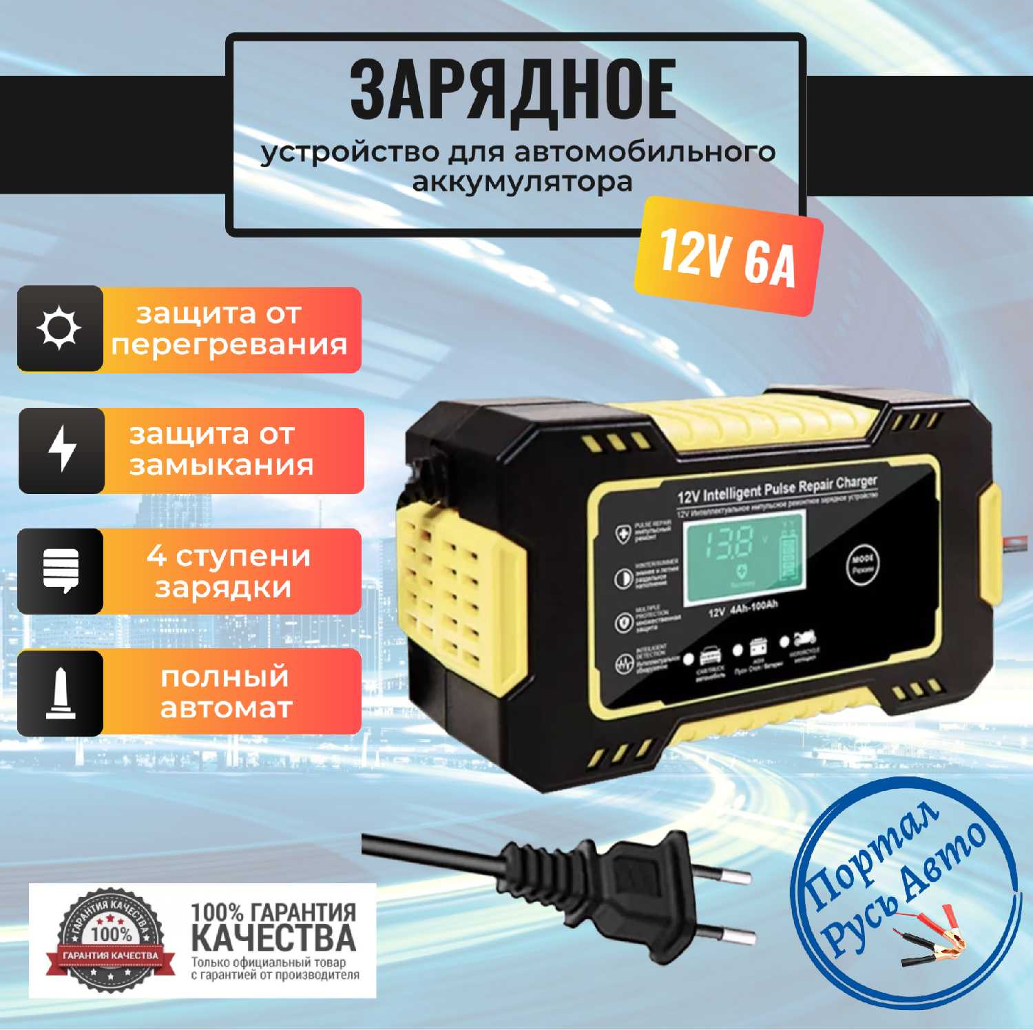 | Функции : | быстрая зарядка QC 2.0, встроенный амперметр, встроенный вольтметр, зарядка мобильных устройств (Powerbank), зарядка от прикуривателя, подходит для AGM/GEL аккумуляторов, предпусковая зарядка, тест состояния АКБ |
