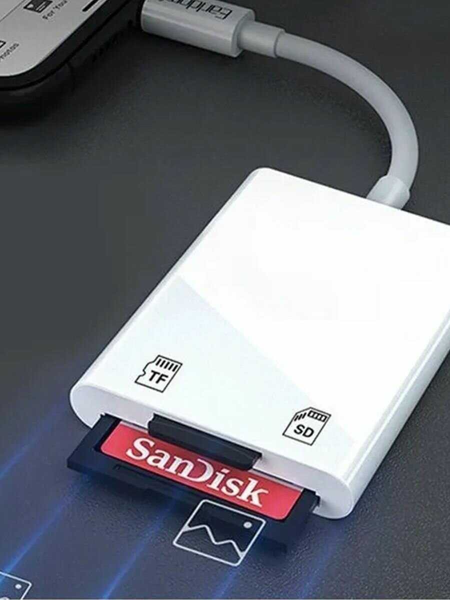 Картридер отлично работает с айфоном (12)фотографии с флешки фотоаппарата без проблем передаются