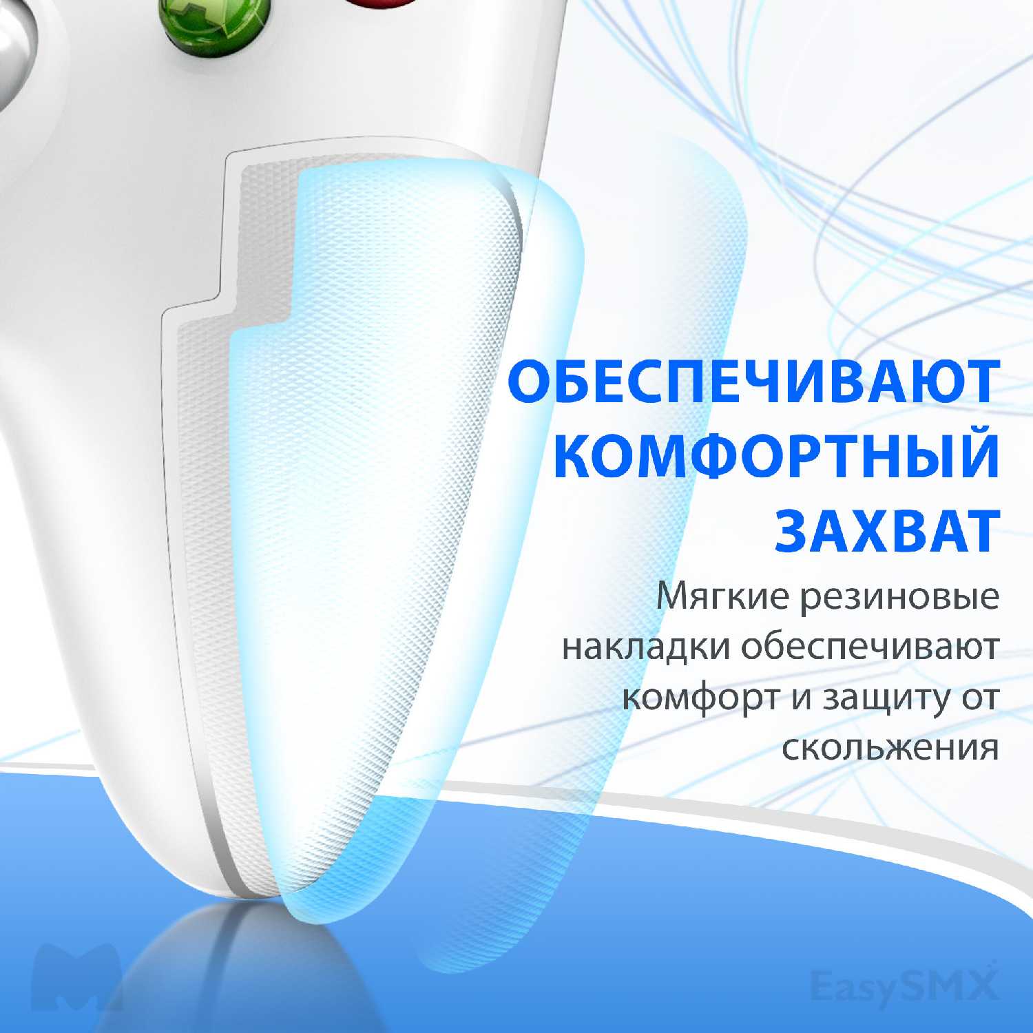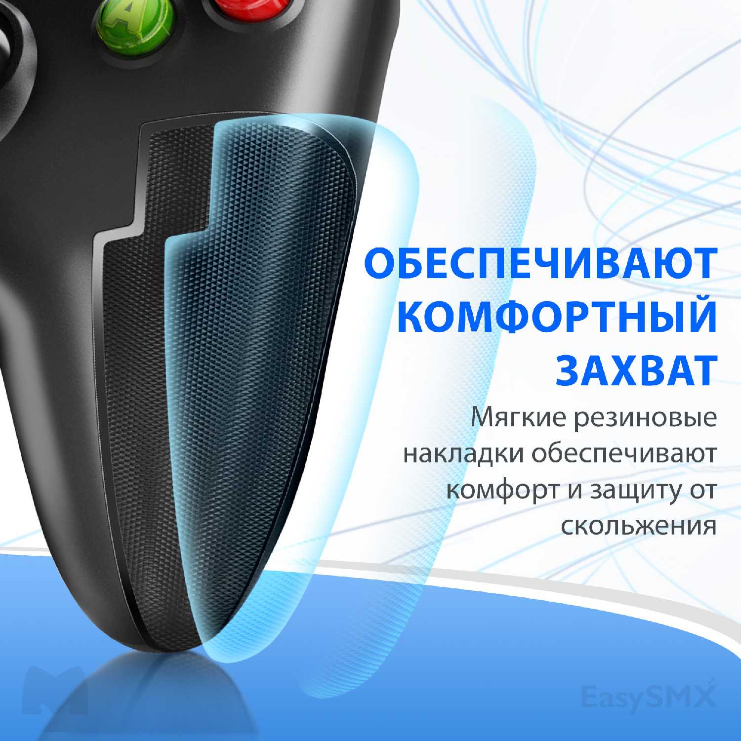 - + Удобные рифленые зоны по бокам, хорошо лежит в руках, не скользит и нет проблем с подключением как к ПК, так и к приставкам.