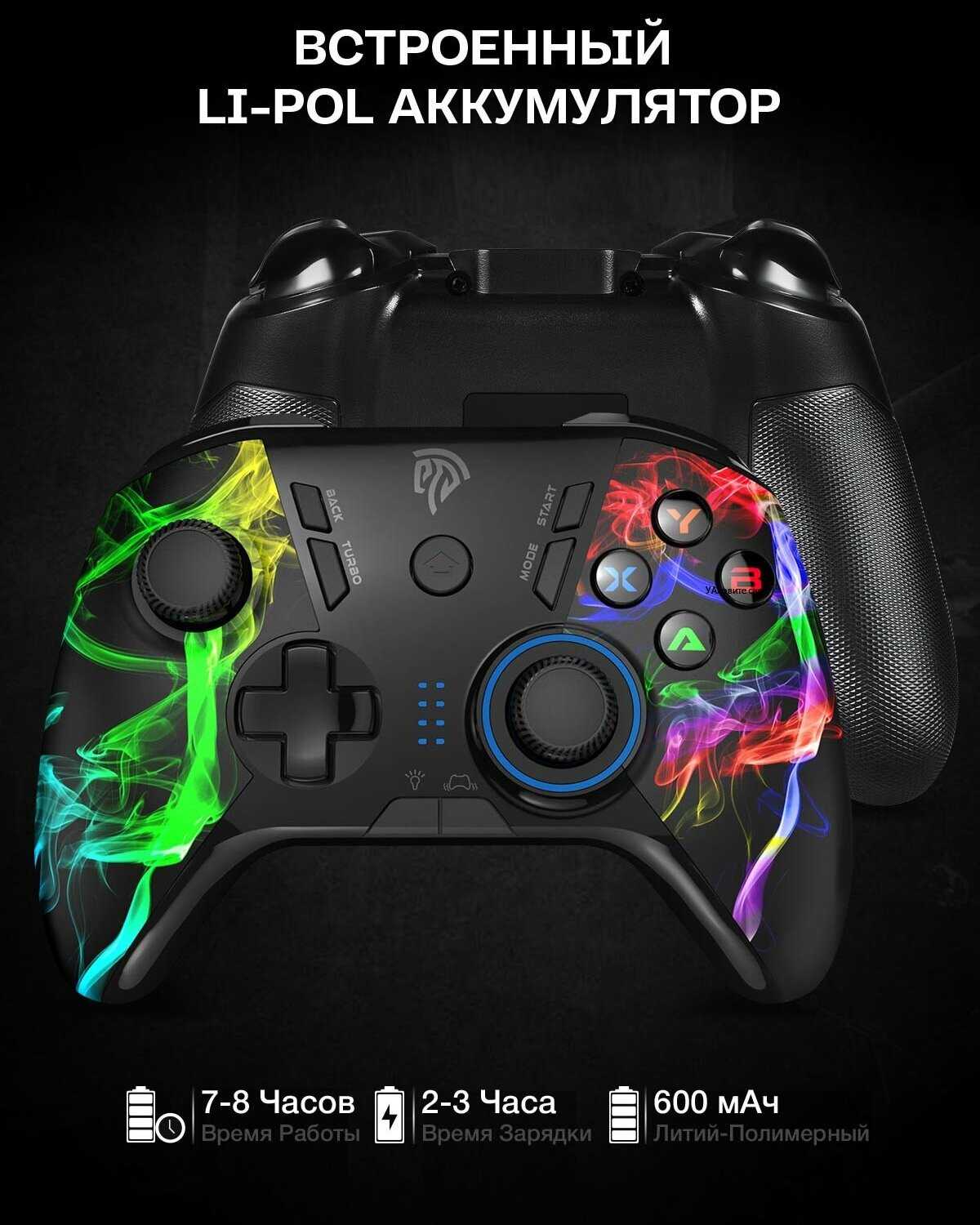Время работы от одного заряда превышает заявленные 8 часов, по отзывам пользователей, его хватает на несколько продолжительных игровых сессий. Зарядка через порт Type-C происходит достаточно быстро, что позволяет быстро восстановить работоспособность устройства. Геймпад оснащен функцией автоматического отключения при бездействии, что способствует экономии заряда батареи. -
