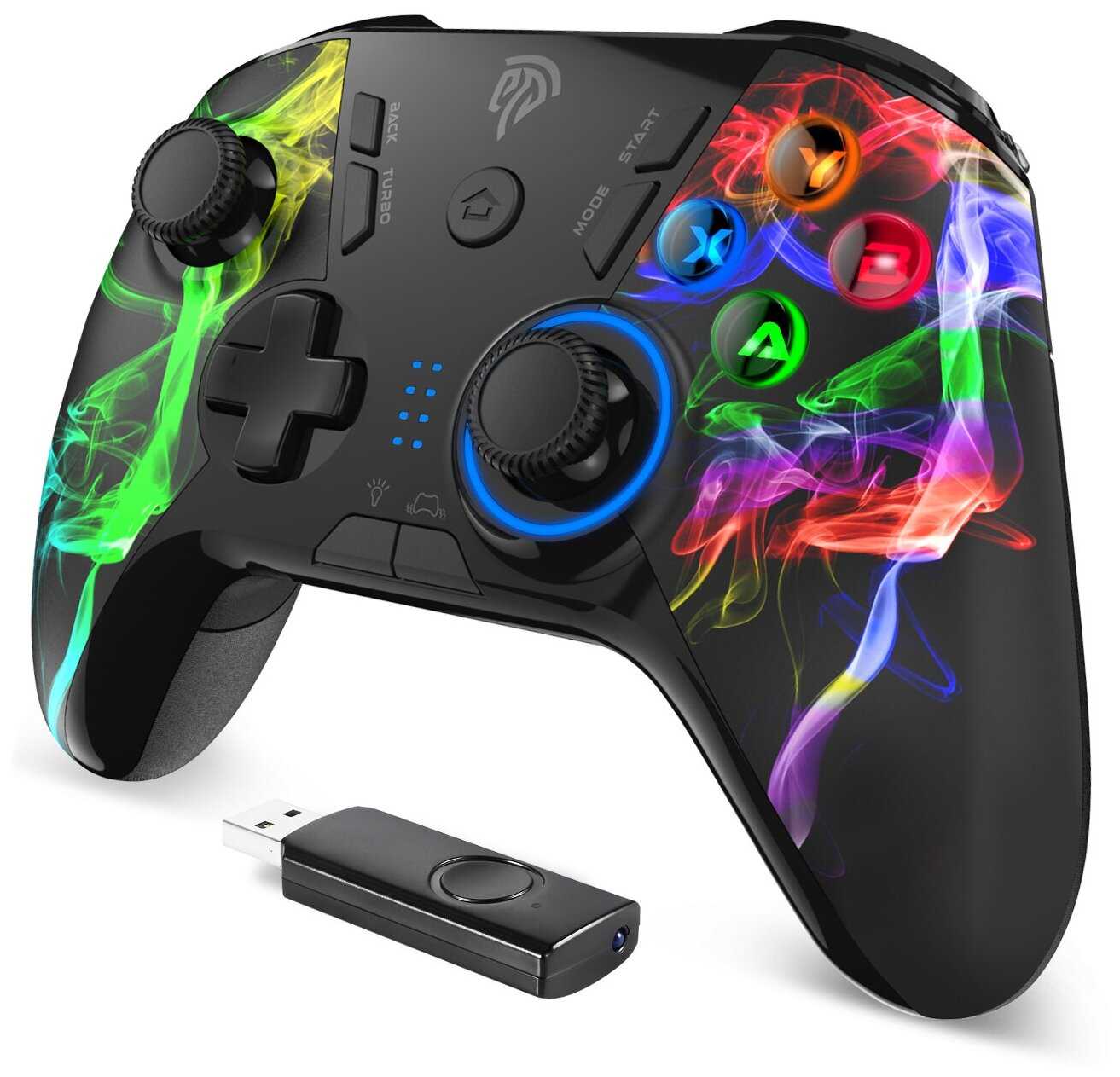 Геймпад легко подключается к ПК через беспроводной приемник (донгл), который распознается системой автоматически, без необходимости установки дополнительных драйверов. Для подключения к телевизору или телефону используется кабель Type-C, входящий в комплект. Беспроводное соединение через ресивер отличается стабильностью и мгновенным откликом, что подтверждается множеством пользователей. -