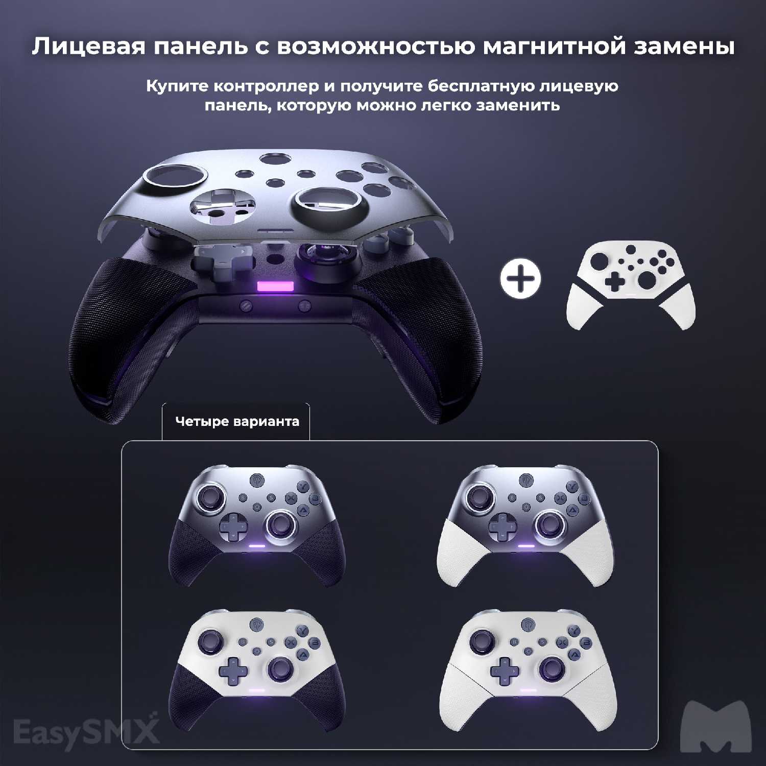 - Сменные магнитные панели в комплекте позволяют кастомизировать внешний вид, адаптируя геймпад под личные предпочтения и повышая эмоциональную вовлеченность в игру.