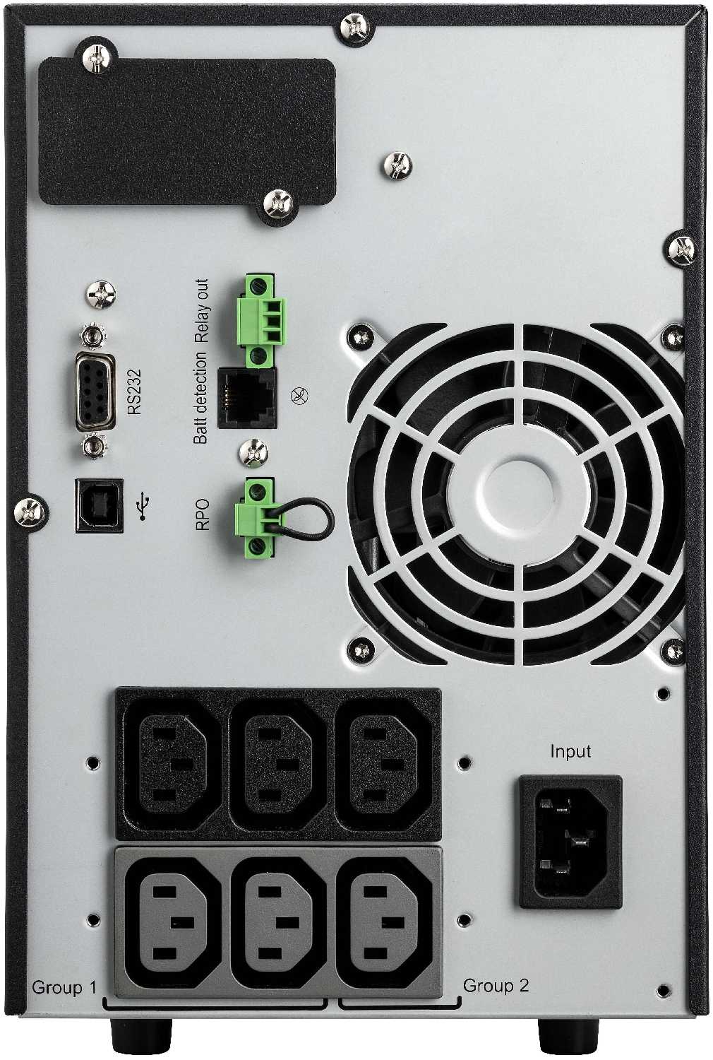 | Дополнительная информация : | 1 мини-терминал для дистанционного выключения питания + 1 мини-клеммный блок для выходного реле, коэффициент выходной мощности 0.9, журнал событий и ошибок, встроенный счетчик электроэнергии, автозапуск, принудительная перезагрузка, режим сохранения энергии, режим сна, класс защиты IP20, топология двойного преобразования, с сетевой картой работает в виртуальных средах, ЖК-дисплей с русифицированным меню, возможность управления сегментами нагрузки и удаленной перезагрузки устройств, RPO |