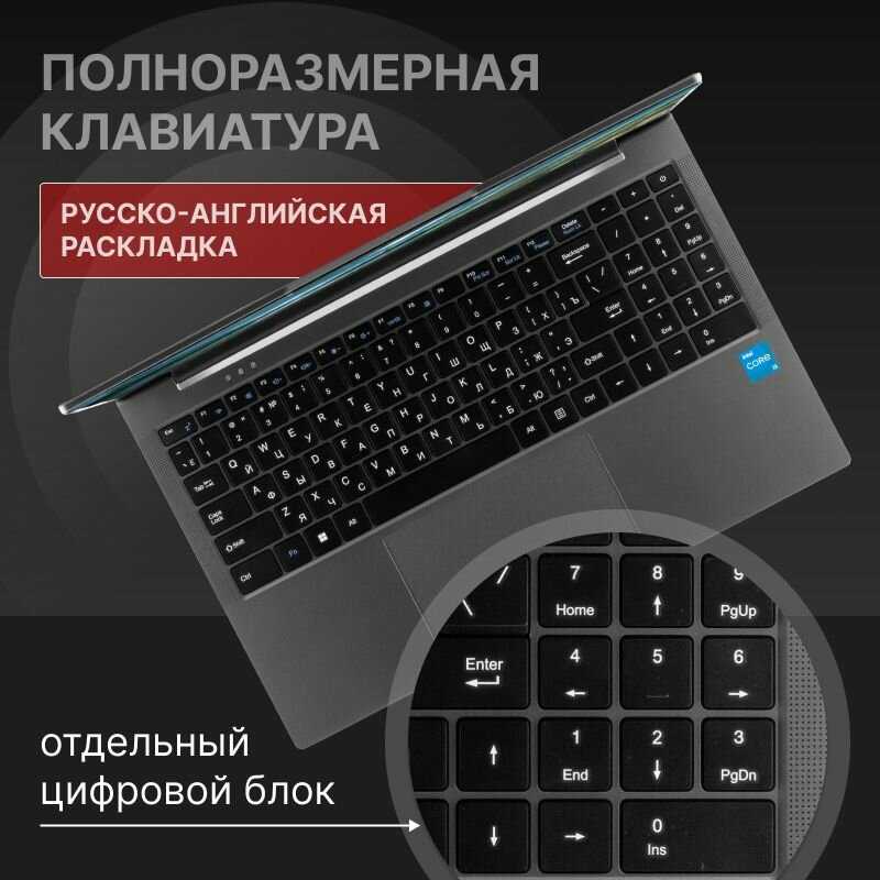 Клавиши имеют короткий ход и издают громкое "клацанье", что утомляет при многочасовой работе. Отсутствует подсветка – это минус для использования в темноте. Плюсы: русская раскладка, полноразмерный цифровой блок и ширина 15.6 дюймов.