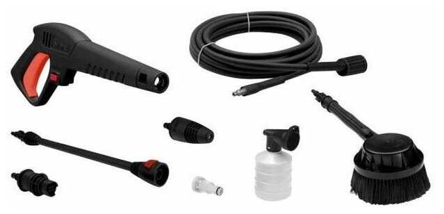 | Подробная комплектация : | мойка высокого давления, шланг высокого давления, пистолет, удлинительная насадка, активный пеногенератор с регулировками, грязевая фреза, фильтр тонкой очистки, щетка моющая |