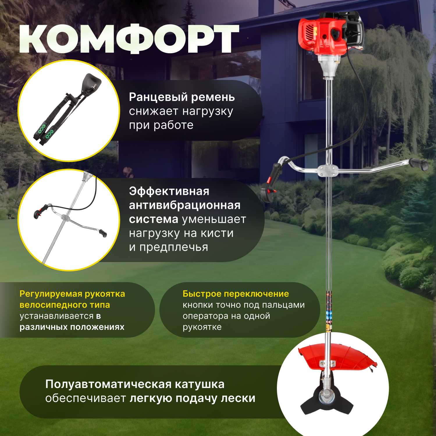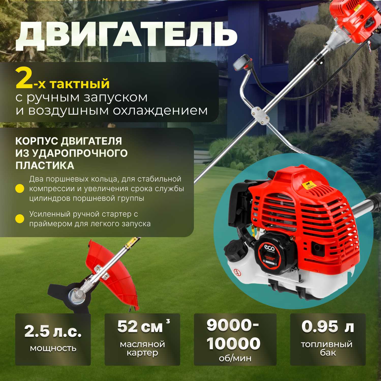 - + Мощный триммер с легким запуском.