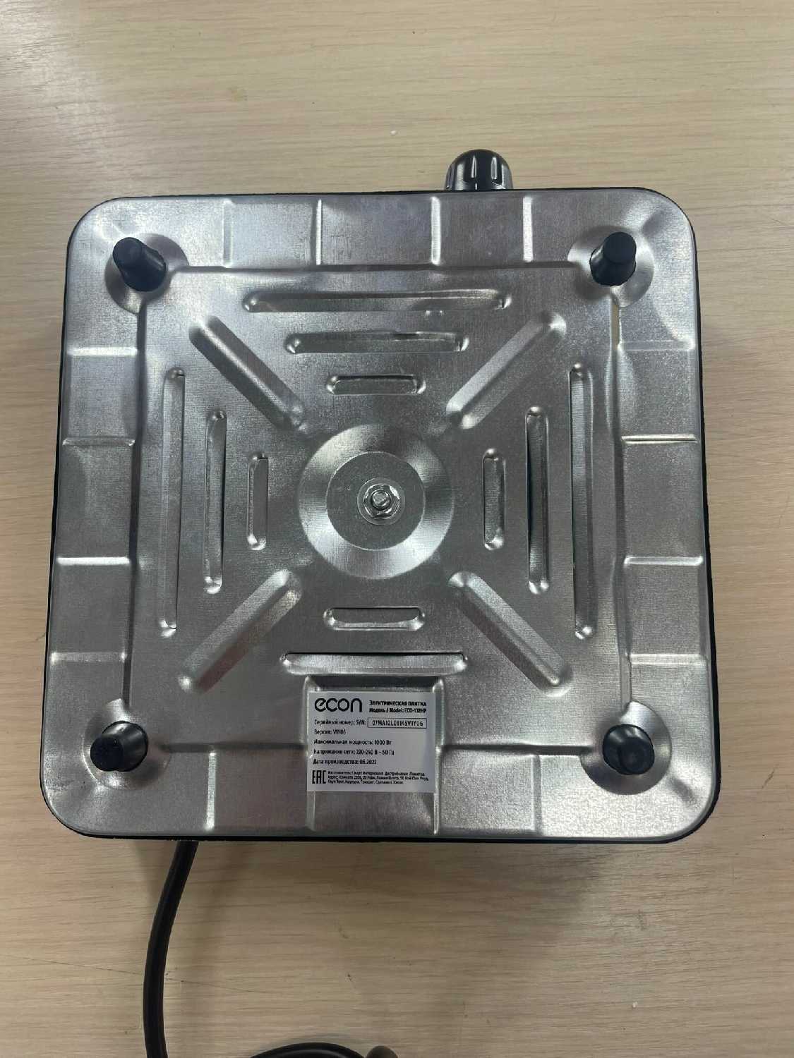 Качество сборки крайне нестабильно: около 30% пользователей столкнулись с фатальными дефектами уже при первом включении. Типичны случаи растрескивания чугунной конфорки, оплавления внутренней проводки, деформации корпуса и выхода из строя терморегулятора в течение 1–2 месяцев эксплуатации. Запах жжёной пластмассы или химический дым при первом прогреве отмечают 60% респондентов — у половины он исчезает после 2–3 циклов использования, у остальных сохраняется месяцами. Надёжность ножек регулятора мощности также вызывает нарекания — известны случаи их отваливания при нагреве. Ресурс плитки ограничен: при ежедневном использовании срок службы редко превышает 3–4 месяца.