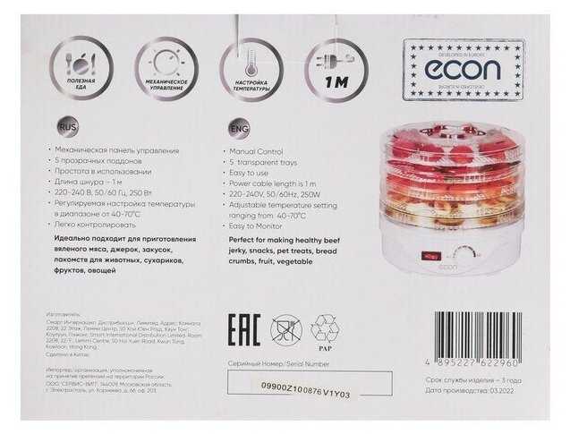 Отзывы о Сушилка Для Фруктов Econ ECO-3010FD