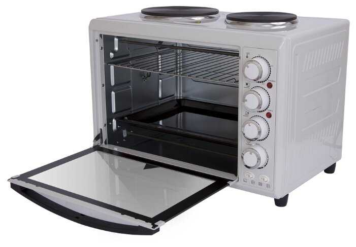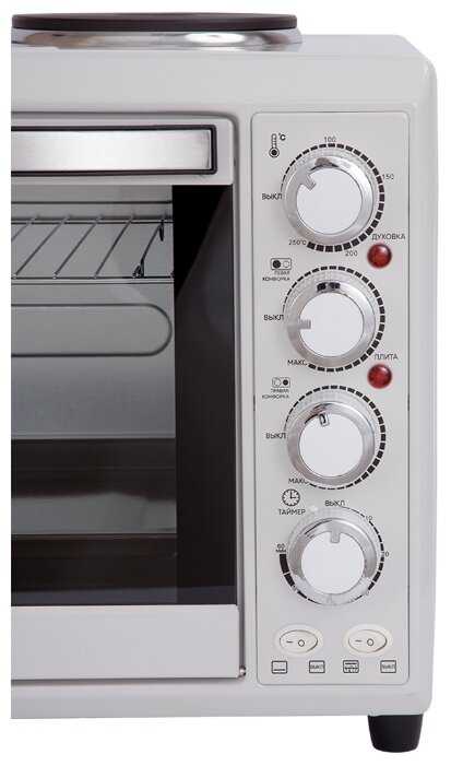 Очень удобно, что есть таймер, не надо беспокоиться, выключил ли печь. Температура конфорок регулируется, позволяя комфортно готовить. Понравилось печь в духовке: пироги, горячие бутерброды. А курица на вертеле: вообще здорово, не сравнить с магазинной курицей-гриль. Все довольны, что купили именно эту печь🙂