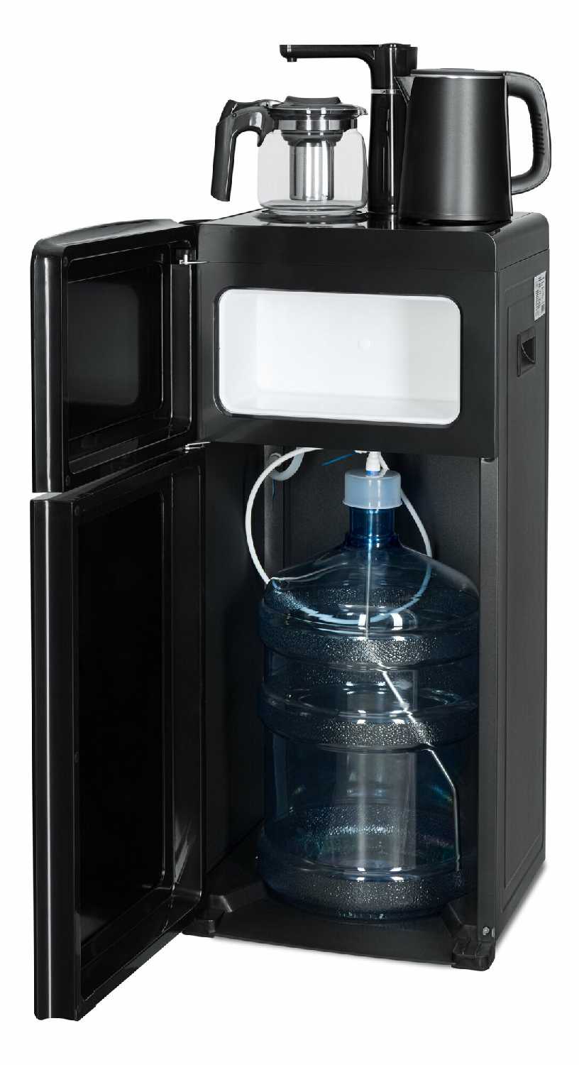 Два чайника спасение в этом случае. Можно заварить и чай и кофе. Бутьль с водой имеет отсек внутри, что тоже благоприятно влияет на интерьер. Так же имеется небольшой отсек для хранения. Единственный недостаток, это то, что чуть чуть брызгает при наливе в стаканчик. В остальном всё хорошо.
