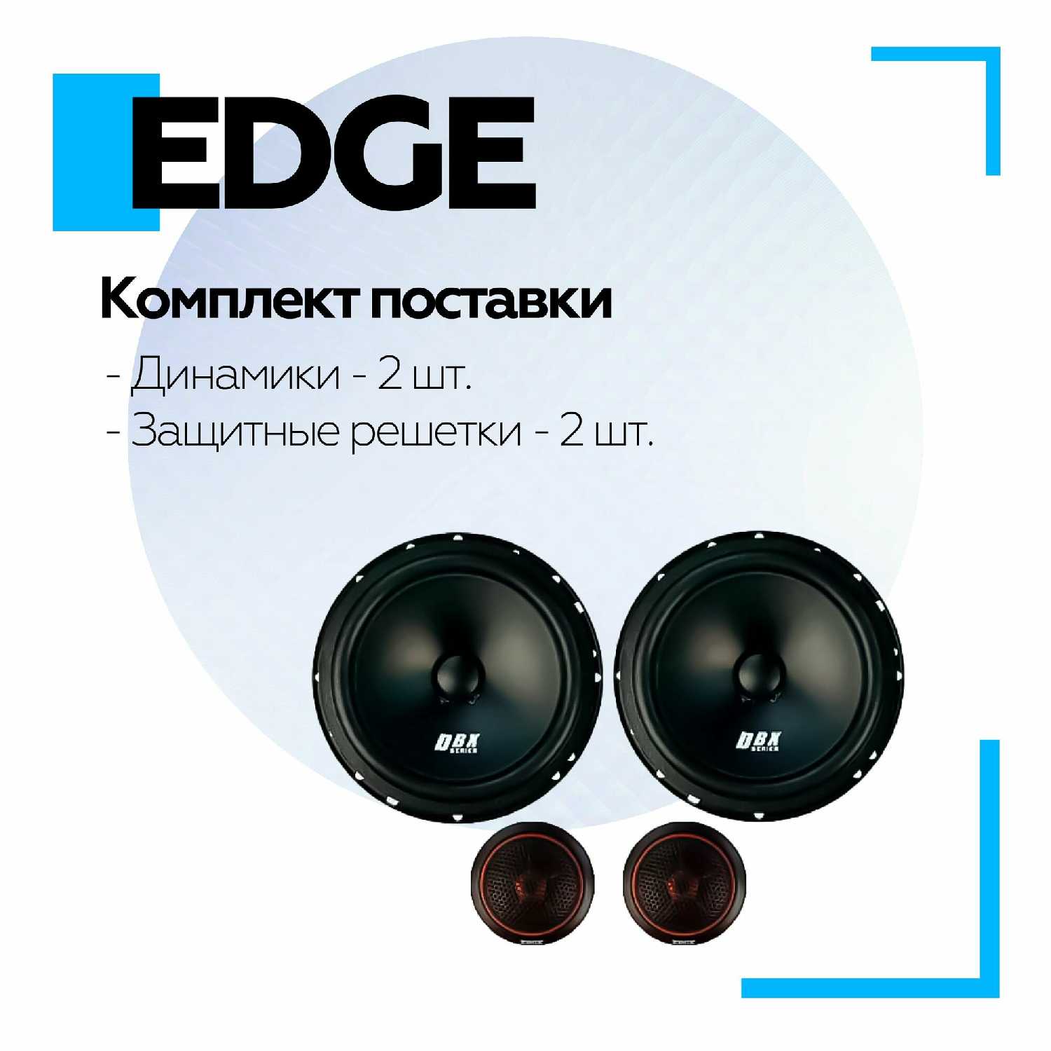 | Дополнительная информация : | Коаксиальная акустическая система EDGE EDBX6С-E1 - это комплект автомобильной акустики, который способен подарить водителю и пассажирам качественное звучание музыки различных жанров. 13-сантиметровые колонки отличаются простотой установки в штатные места транспортного средства |