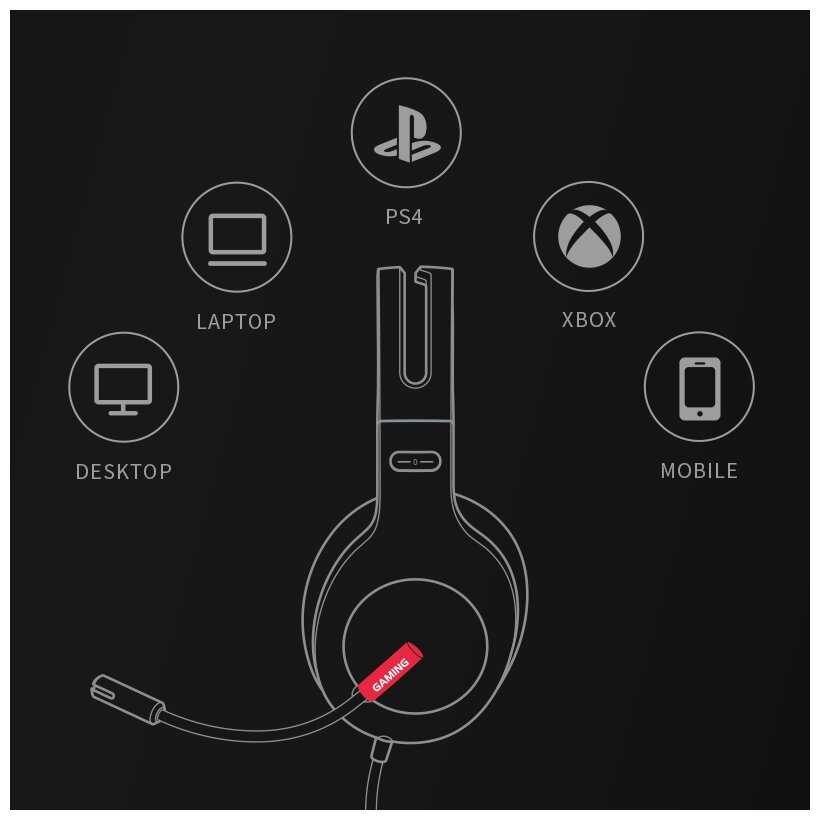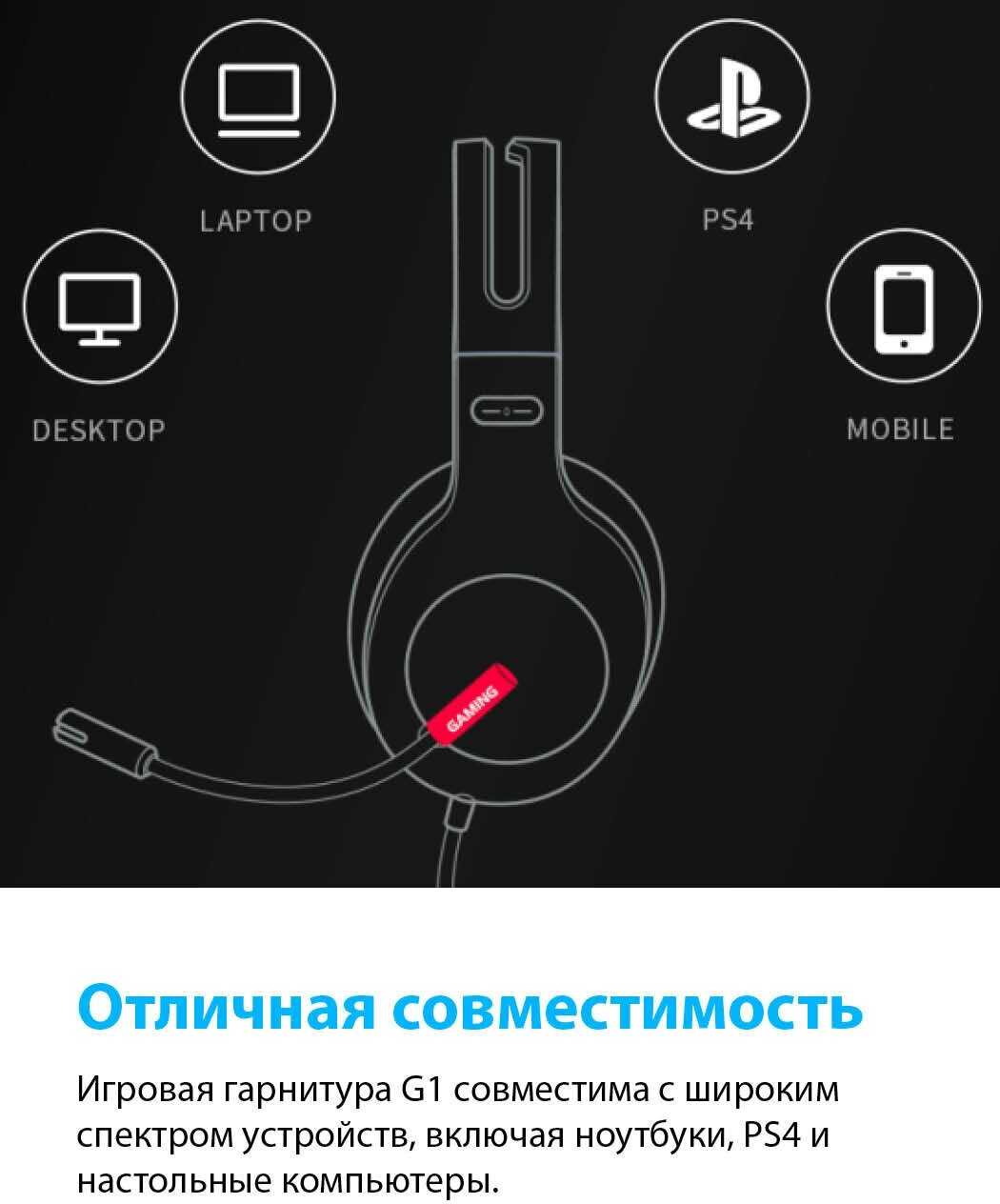 Небольшой красный светодиод на левом ухе даёт игровую подсветку, не навязчивую. Дизайн классический с игровым уклоном: матовый пластик, стильный, без излишеств. Амбушюры сменные, оголовье крепкое. Выглядит компактно, не громоздко. Подходит тем, кто ищет без яркой RGB-подсветки. -