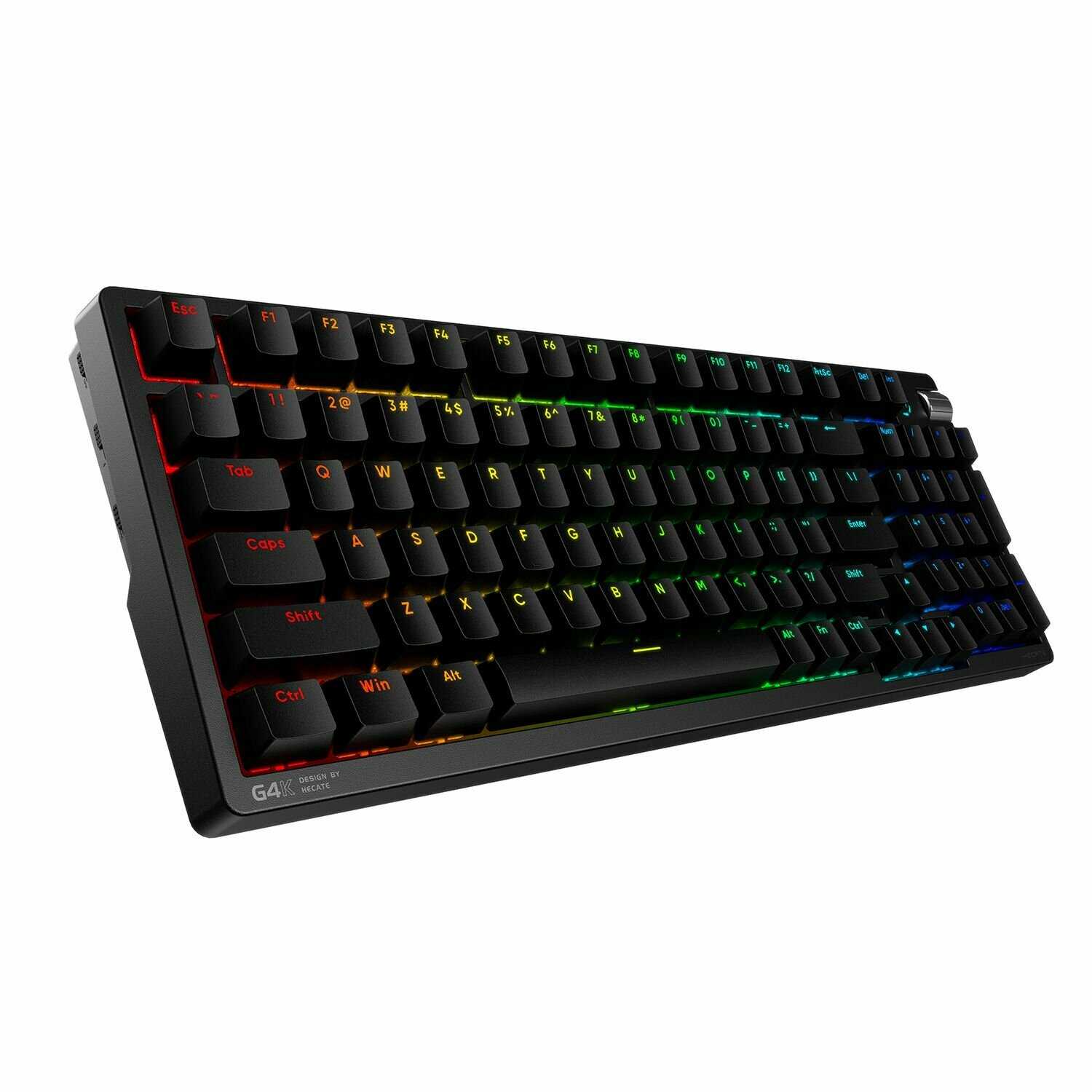 - + Хорошо сделана, кабель в оплётке , подсветка кнопок, боковой ролик для управления подсветкой и громкостью, программа для настройки клавиатуры.