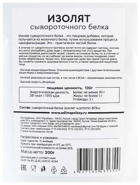 90 отзывов пользователей o Едим с пользой Изолят сывороточного белка