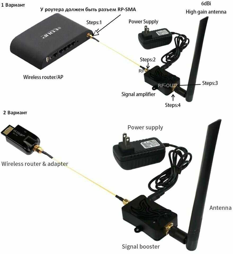 | Дополнительная информация : | 1 х усилитель Wi-fi сигнала 1 х Блок питания 1 х SMA кабель 1 х антенна 6 дБи |