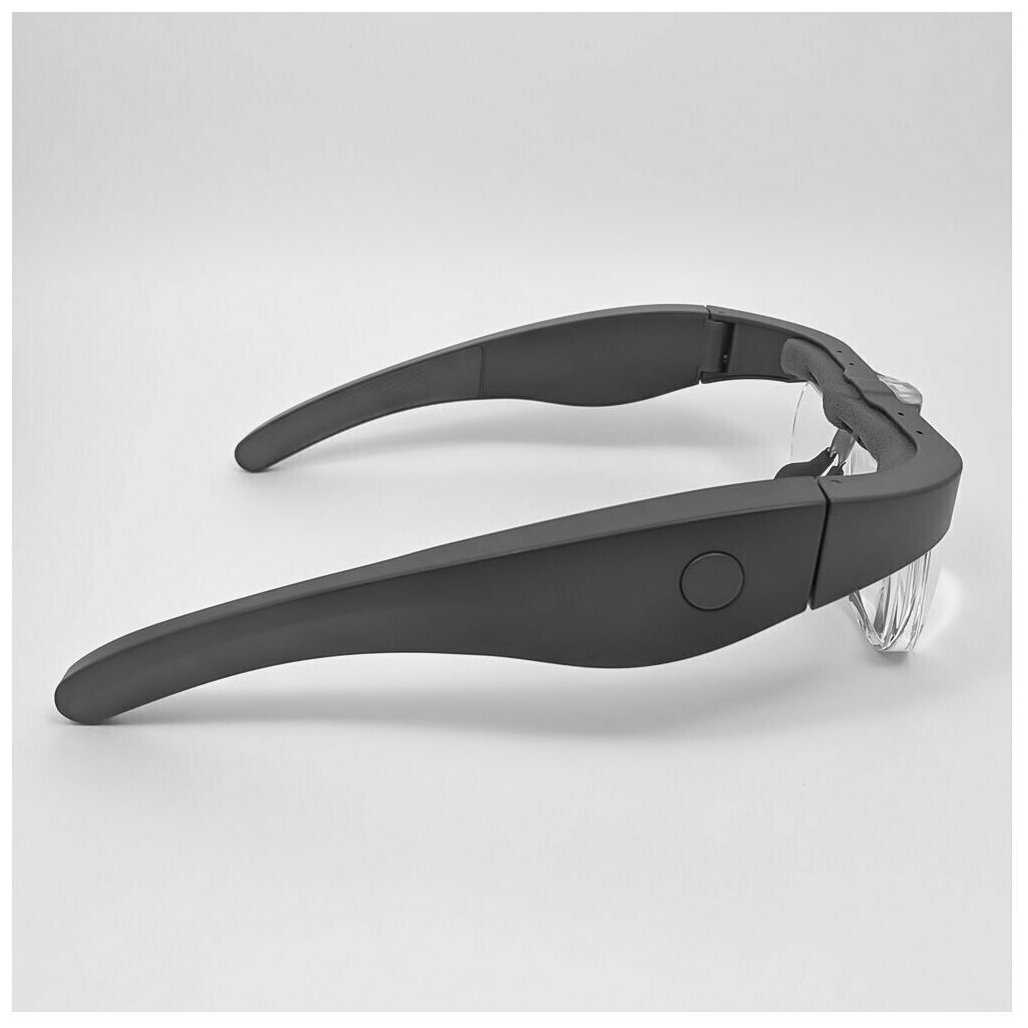 - + Легкие. Удобно сидят, не сползают. Хороший набор увеличительных вставок. Два режима подсветки. Удобно включается подсветка. Аккумулятора хватает почти на целый день.