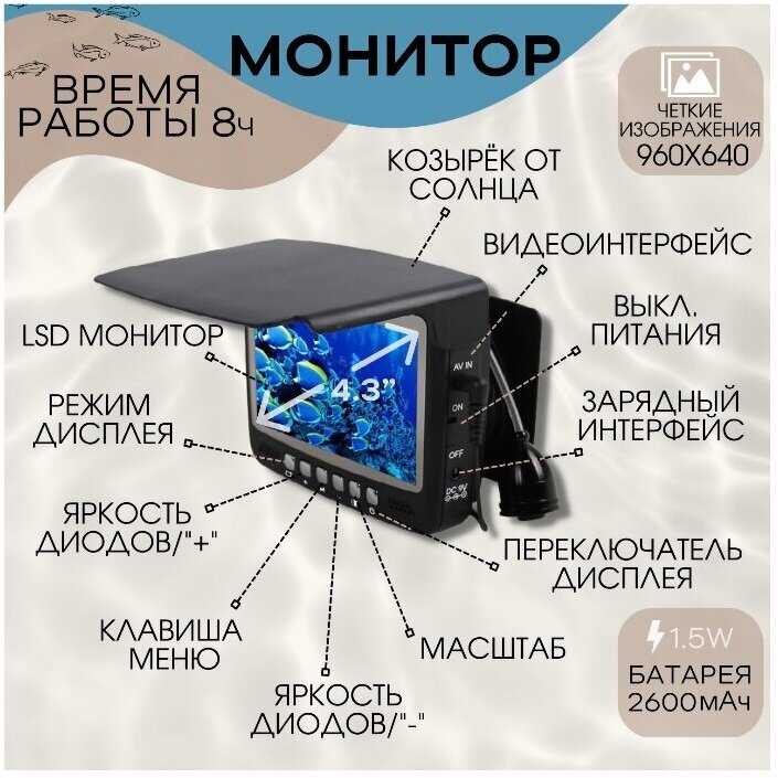 Дополнительная информация : | длина кабеля трансдьюсера/камеры: 15 м, максимальное время работы без подзарядки: 8 ч, подробная комплектация: Дисплей, Видоискатель (глазок), Зарядное устройство, Держатель для удочки, Кабель 15 м, Поплавок, глубина: 15000 мм |