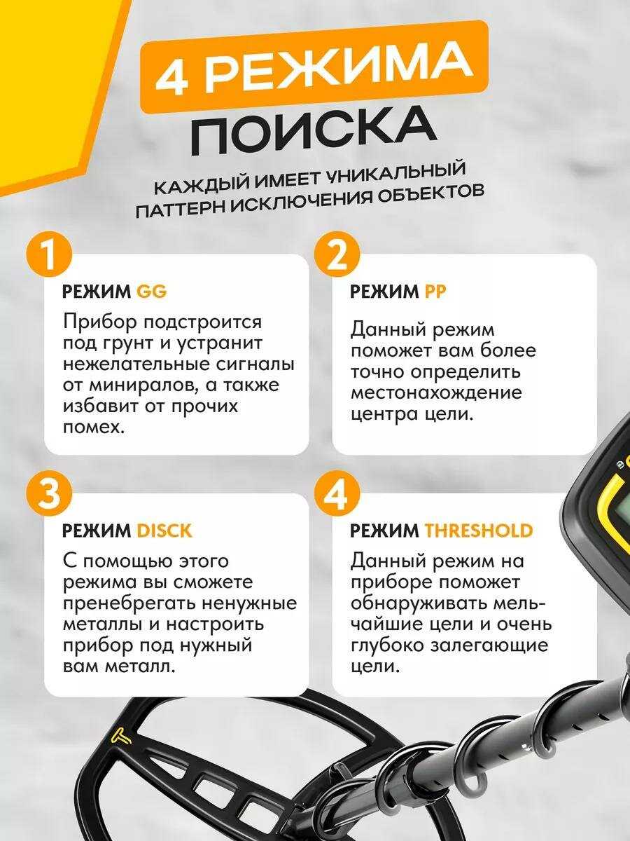 Также мне понравилось, что металлоискатель имеет несколько режимов работы, что позволяет настроить его под конкретные задачи.