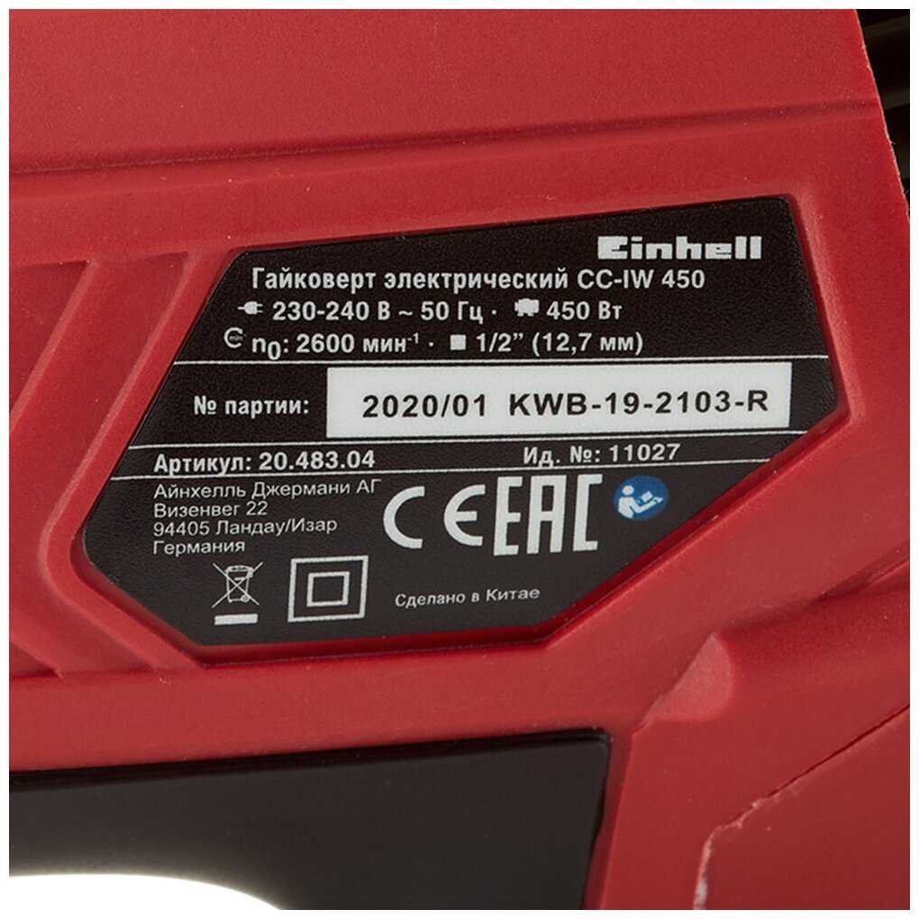 Обзор Einhell Гайковерт (CC-IW 450) - мнение пользователей*: