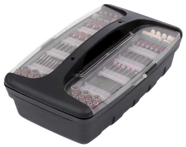 | Комплектация : | Круги наждачные 32 шт.Круги отрезные 20 шт.Цилиндры наждачные 16 шт.Шарошки абразивные 10 шт.Боры 12 шт.Круги полировальные 7 шт.Сверла 5 шт.Цанги 4 шт.Насадки полировальные 2 шт.Кисточки полировальные 2 шт.Кордщетки 2 шт.Держатели цилиндров наждачных 2 шт.Держатель полировальных кругов 1 шт.Держатель для отрезных кругов 1 шт.Держатель наждачных кругов 1 шт.Камень точильный 1 шт.Зарядное устройствоНасадка для работы в слабоосвещенных местах |