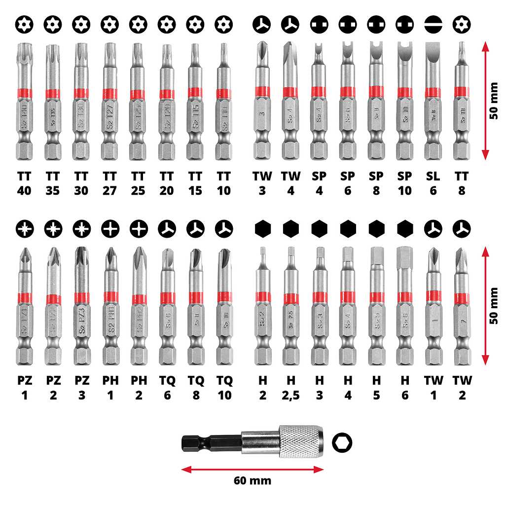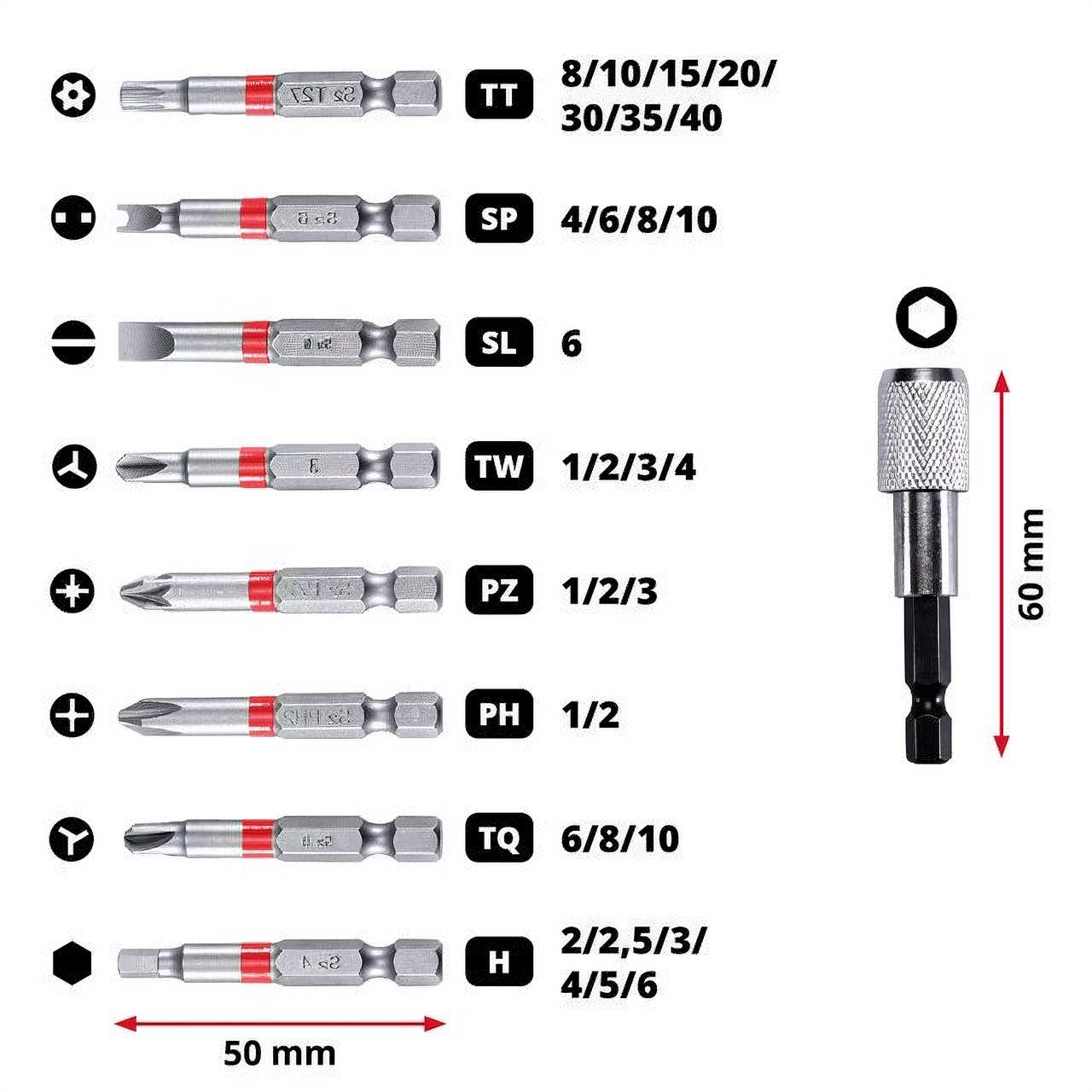 Дополнительная информация : | Набор бит einhell 33 предмета 50мм с держателем |