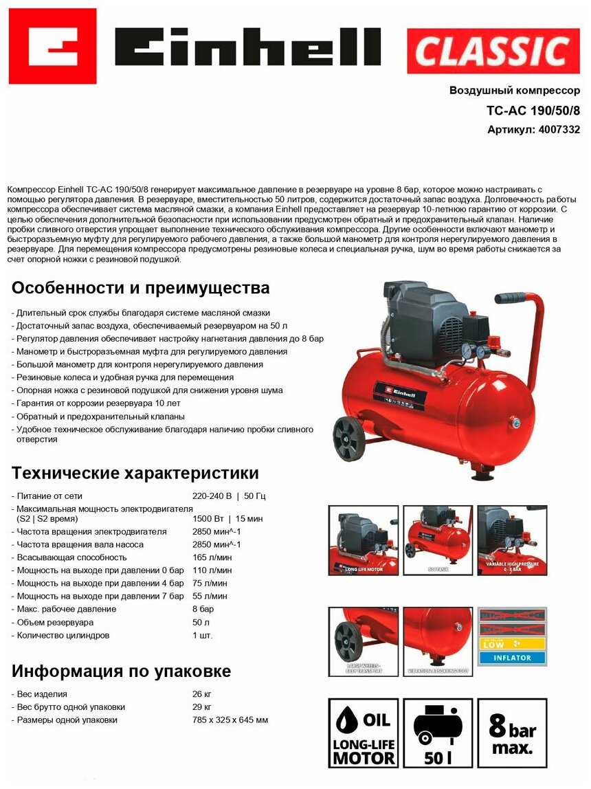 Характеристи Einhell TC-AC 190/50/8 4007332