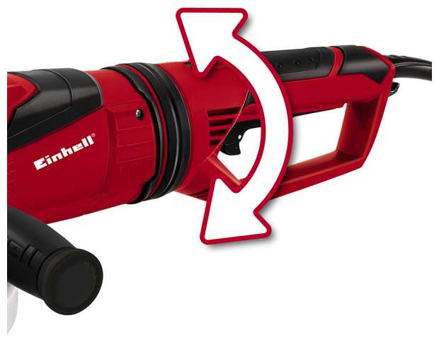 Ручка имеет три точки фиксации (сбоку, спереди или в других положениях), что позволяет адаптировать хват под индивидуальные предпочтения и снизить утомляемость. Поворотный механизм рукоятки со временем может заклинивать из-за попадания пыли, усложняя регулировку при активной эксплуатации. Вес инструмента (отмеченный как значительный) требует двуручного удержания для безопасной работы, особенно при длительных операциях. -