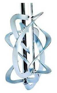 Два венчика перемалывают любые комки в растворе (они вращаются в противоположные стороны, затягивая раствор между себя).