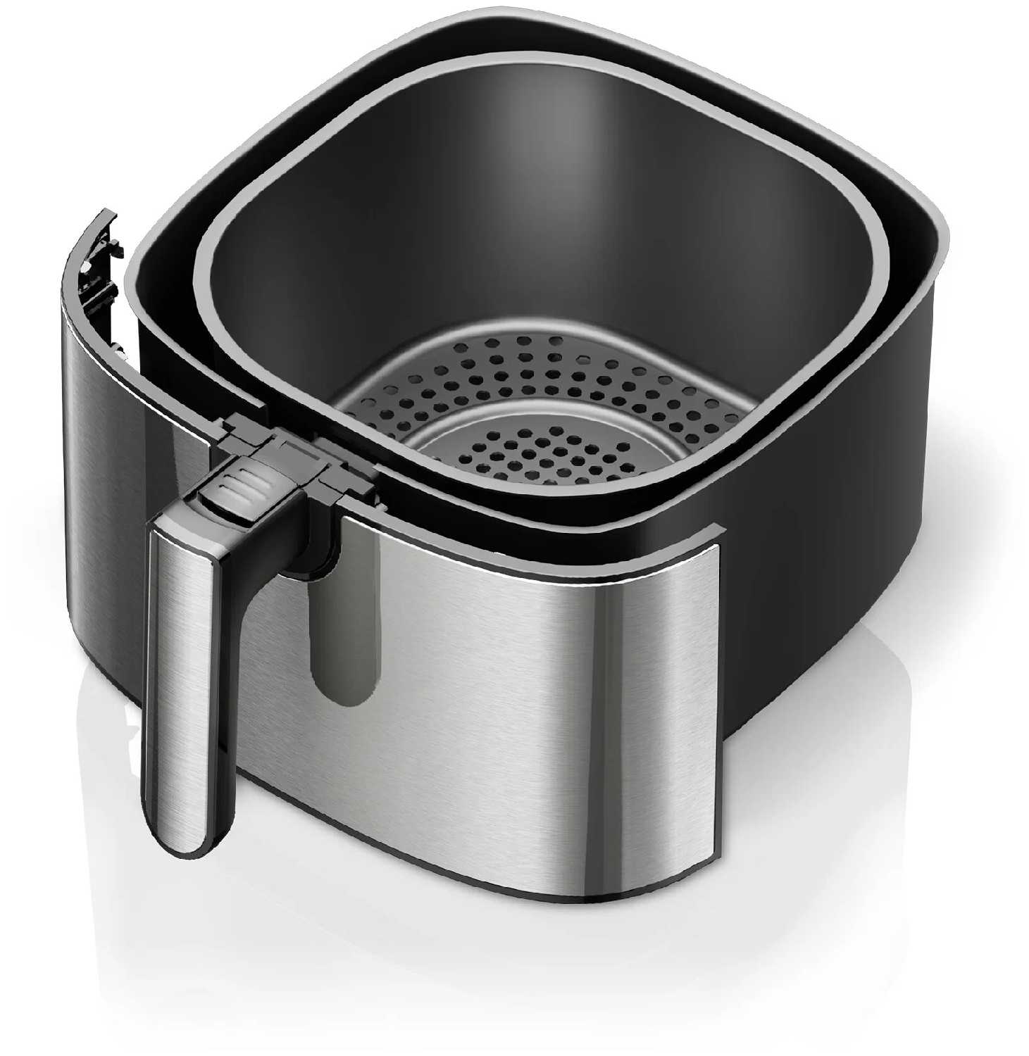- Куриные крылья, стейки или картофель фри готовы за 10-20 минут с хрустящей корочкой и стекающим жиром в поддон.