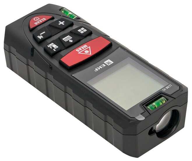 - + Напоминает бытовой дальномер. Присутствует несколько режимов измерений, измерение угла. Пузырьки уровня тоже хорошо. Отсутствует таймер, различные режимы измерения с центра, со стойки. Нет жесткого корпуса, при падении может разбиться. Не положили шнурок и ужасный мешочек для хранения.