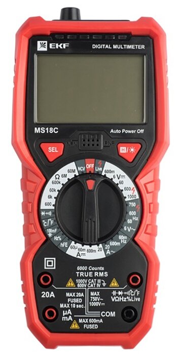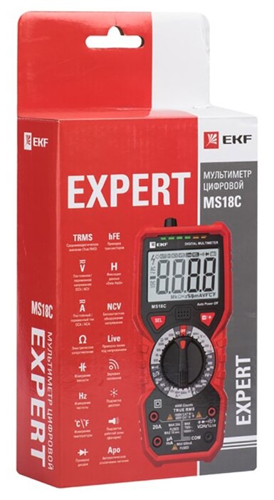 | Особенности : | автоматический выбор диапазона измерений, автоматическое выключение, защита от перегрузки, подсветка дисплея, фиксация измерений, фонарик |