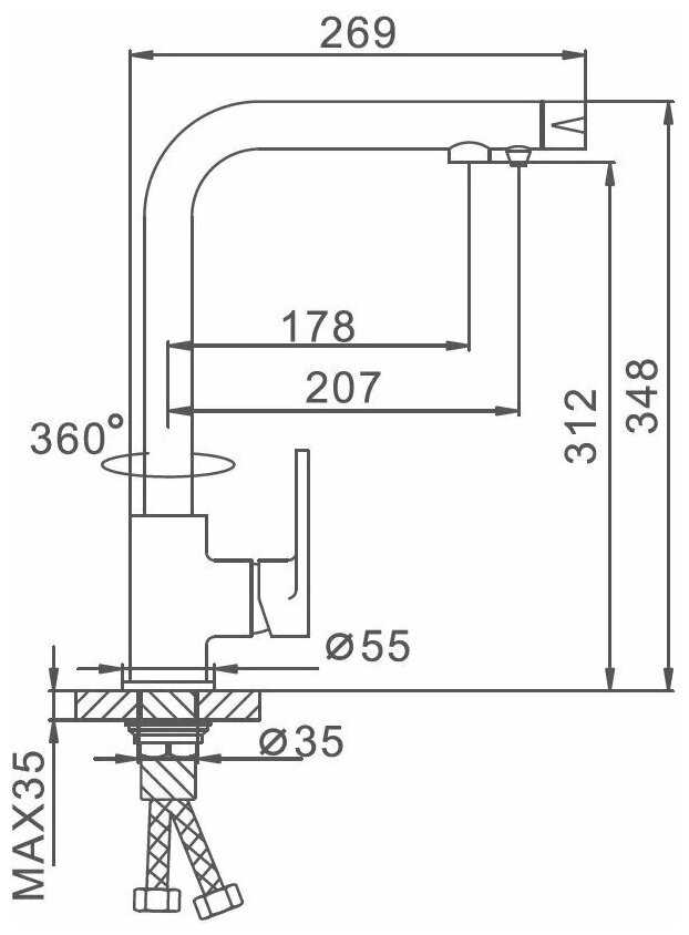 Отзывы о Смеситель для кухни / кран для мойки / смеситель для мойки / Ekko E4366, темно-серый