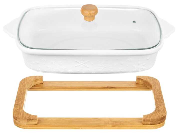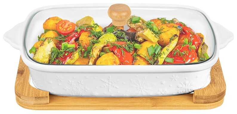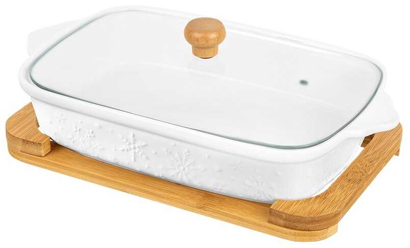Дополнительная информация : | комплектация: блюдо стеклянная крышка деревянная подставка, крышку и подставку нельзя замачивать использовать в СВЧ и ПММ |