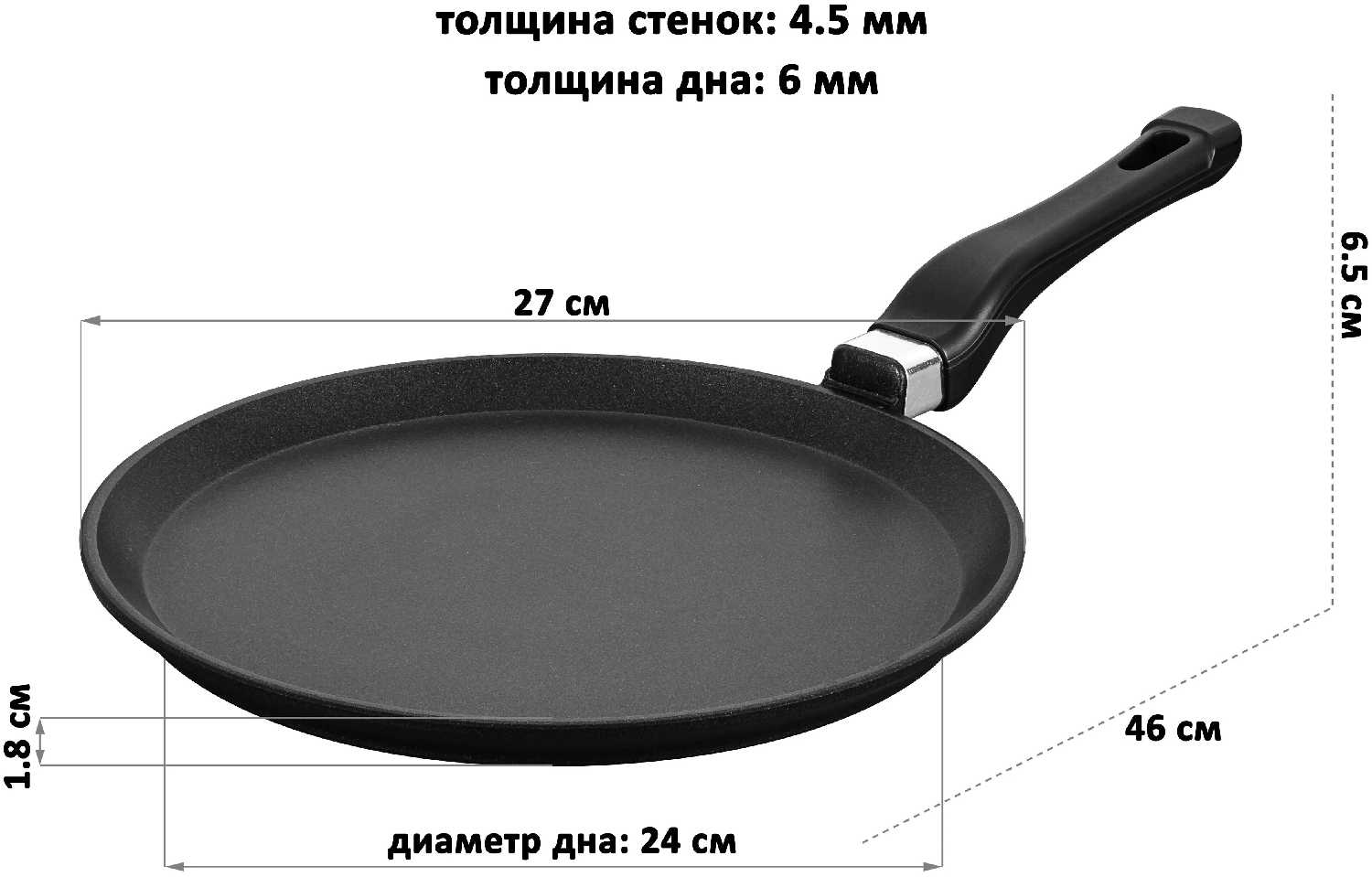 Долго и нужно выбирал сковородку для блинов. Выбор большой. Остановился на этой. И не ошибся! Прекрасная сковорода во всех отношениях. Прекрасный отечественный продукт!! Если, купите, думаю не пожалеете. Главное соблюдать инструкцию по эксплуатации. Хвалёный Тефаль, коих у меня было не одна, к примеру, и рядом не лежал.