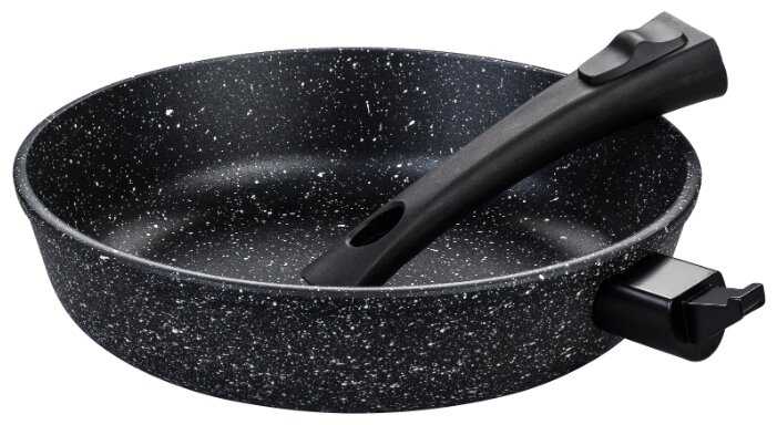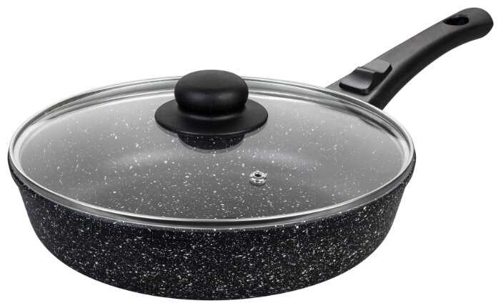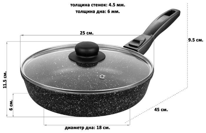 | Подробная комплектация : | сковорода, стеклянная крышка, съемная бакелитовая ручка |