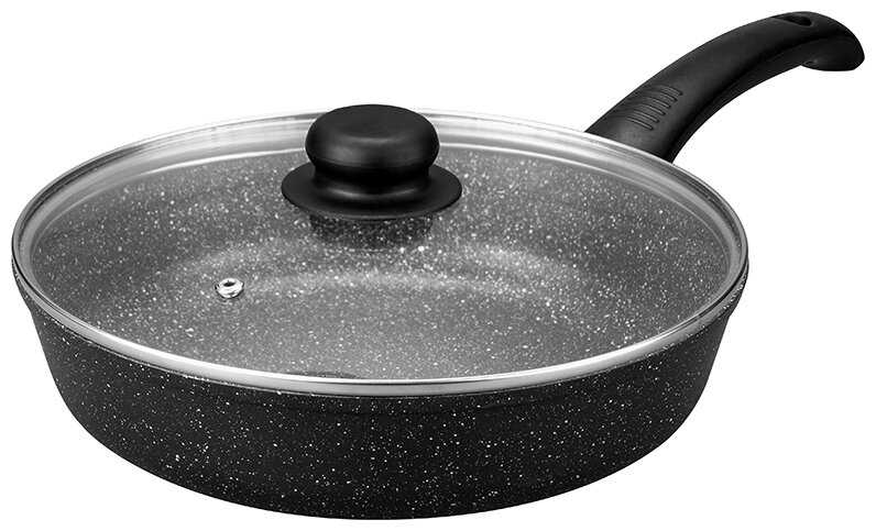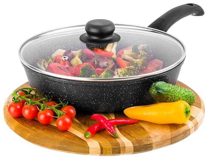 - + Хорошая сковорода за свою цену, на индукции работает, крышка в комплекте, глубина и диаметр хорошие, не тонкая, не гнется, выдерживает мойку в посудомоечной машине