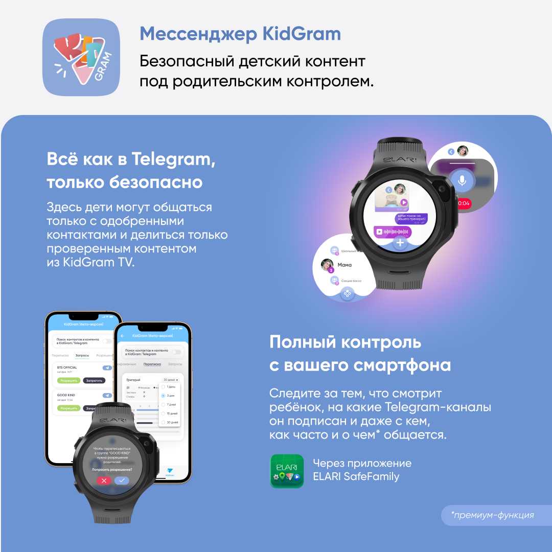 Встроенное детское радио и приложение KidGram содержат модерацию: нет посторонних контактов, запрещенного контента или рекламы. Родители вручную добавляют контакты для звонков, а неизвестные номера блокируются автоматически. Игры — простые аркады без агрессивного сюжета. -