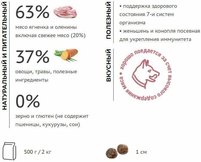 К сожалению моей собаке не подошел, ей было тяжело разжевывать . Может корм сам и неплохой, но у нее реакция была на него не очень хорошая. Желудок среагировал.